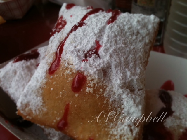 I’m unsure how in my 36 years, I’ve never had the pleasure of trying such a simple, yet delicate pastry. I worked in a bakery for goodness sakes! Then again, it was Safeway’s bakery and they’re not exactly known for diversity in pastries! 😉 Being I had nothing to compare these lovely little fried pockets to, I was certainly not disappointed. Lets be honest, can you ever fail with fried dough!? I didn’t think so. 😉 The Beignets were everything I had read; rectangular in shape, air-y and light. So light in fact that it would be easy to devour a plate full! EASY.