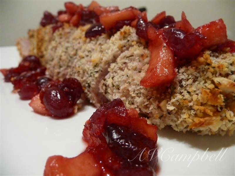 Almond-Crusted Pork Tenderloin with Dried Cranberry-Apple Conserve