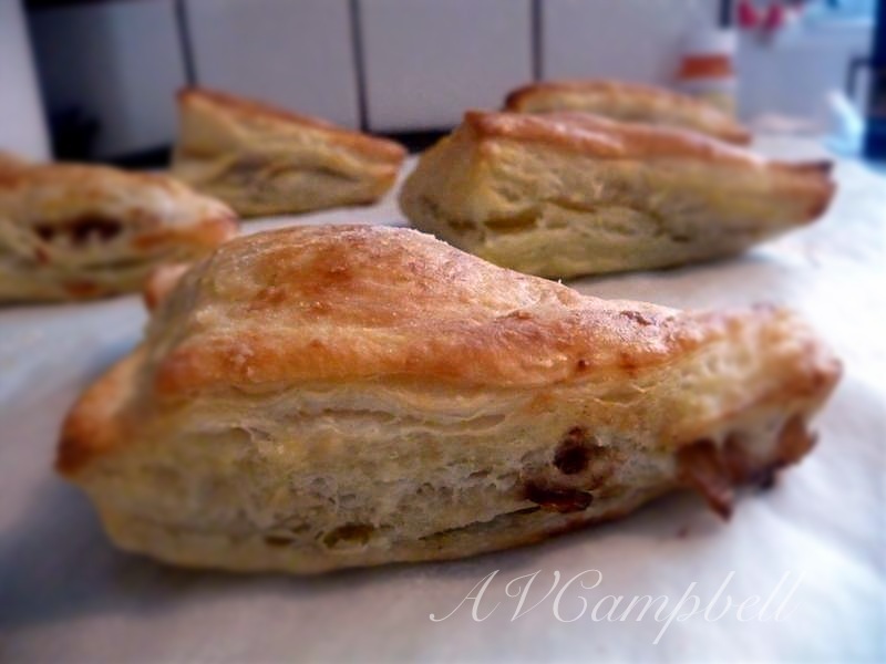 A bit dangerous right out of the oven as they hold their heat, these delicate puff pastry triangles are absolutely delightful!