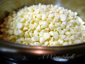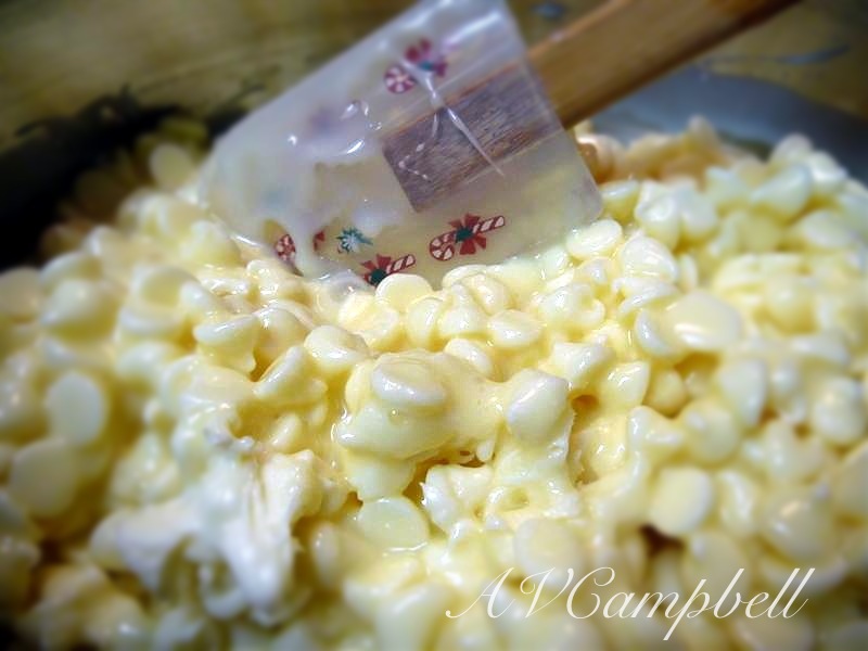 Combine the vanilla chips and sweetened condensed milk in a saucepan over medium heat. Stir frequently until almost melted, remove from heat and continue to stir until smooth.