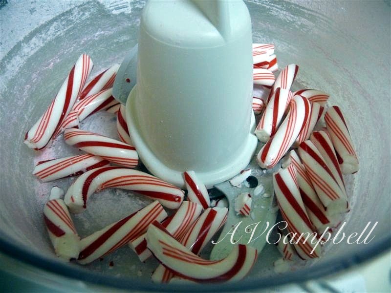 I tried to break up the candy canes with a hammer after placing them between folded parchment paper and a towel. It didn't work so well.