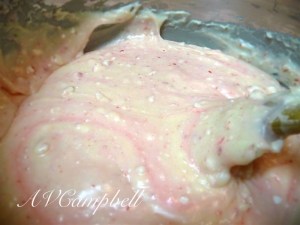Stir in peppermint extract and ONE drop of red food coloring! A small amount goes a loooooooong way!!!