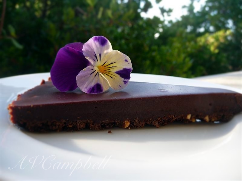 Wanting to make sure the tart was “New Years Eve” acceptable, I cut into it and tried a slice! Quality control, you know! 😉 The tart is rich, smooth and decadent. Other than a tall glass of cold milk or a steaming hot cup of coffee, it needs something. I think a raspberry or strawberry sauce would be the perrrrfect accompaniment! Preferably fresh. Yep! I’ll do that! 😉