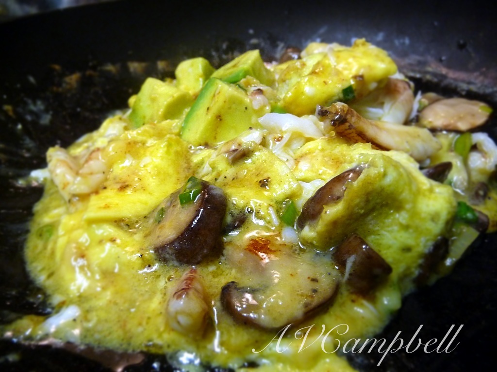 It’s been a long and exhausting week. I had some eggs and some kick ass fixings (mushrooms, green onions, avocado, crab and gruyere cheese) and the bright idea to make an omelet. Mistake #1, why am I thinking? Mistake #2 putting my Pampered Chef cheese grater thingy together left-handed. That made grating the cheese interesting being I’m right-handed! WTF!? Mistake #3, thinking I’m capable of making an omelet when I still haven’t really figured out how to make scrambled eggs. Yes, you read that right. I can make a variety of dishes, desserts and baked goods, but I can’t for the life of me scramble a damn egg. Sigh….