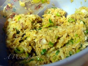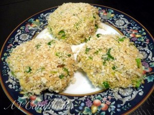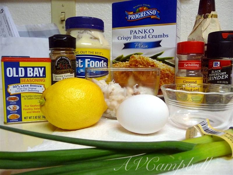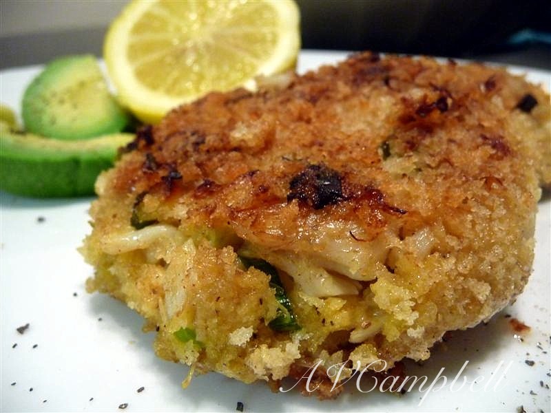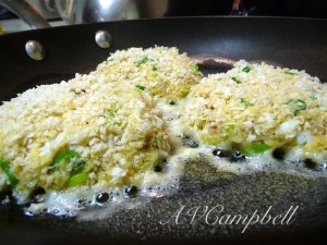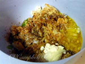 Having roughly a cup of crab leftover and not wanting to waste it, I decided to follow my co-workers casual recommendation as we left work Friday evening, “make crab cakes!” A cup of crab however is not a whole lot of crab for any recipe and I was not about to pick up more. But not to worry, this is where a little imagination and creativity comes into play! What resulted, Crab Cakes, my way! 🙂