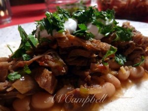 Served with tortilla’s, shredded cheese, beans, cilantro and sour cream, this Chile Verde was a-maz-ing!! It was even better the next day for breakfast! And lunch! 😉