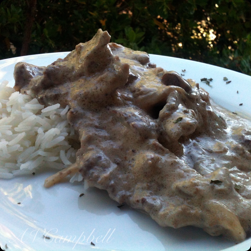 I’ve been dying for a satisfying home-cooked meal all week, however nothing has really sounded all that good. And now that my jaw was bothering me, I knew it was best to stay away from foods that cause the jaw to work (i.e. no crispy carne asada taco’s this week from Chellino’s for me. 😦  Poor me!!), giving it time to rest and “heal”.  Then it hit me! Beef Stroganoff!! When prepared right, the beef is tender and melts in your mouth.  The gravy and egg noodles…. are there even words to describe it?!  Delicious and comforting, Beef Stroganoff it is!!
